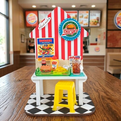 4개입 인쇄 우드 DIY 미니어처 칼라 사각 식탁 테이블