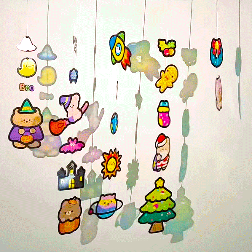크리스마스 장식 스티커 썬캐쳐 책갈피 모빌 만들기