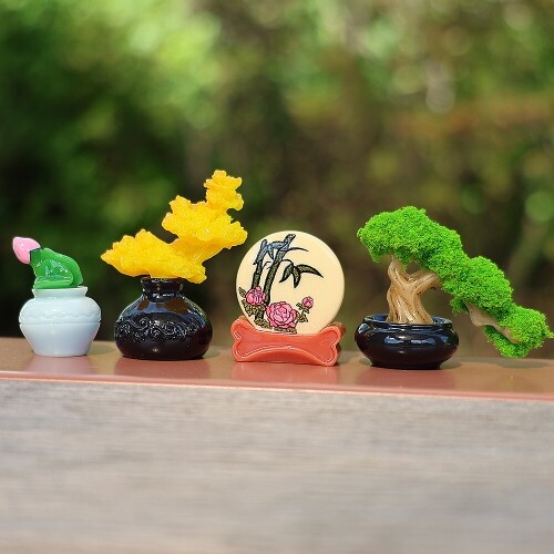 2개입 미니어처 꽃 돌 소나무 도자기 분재