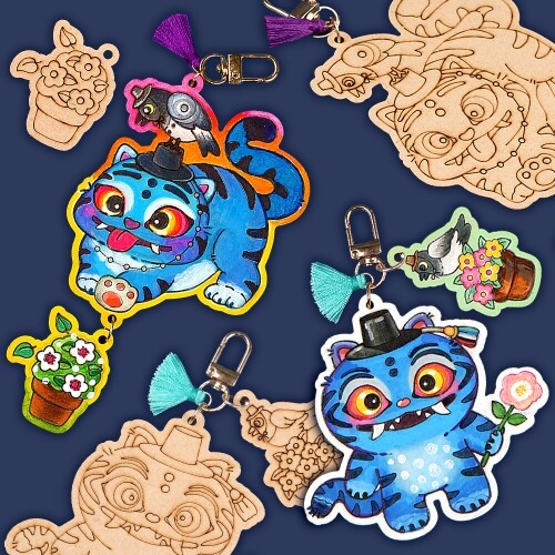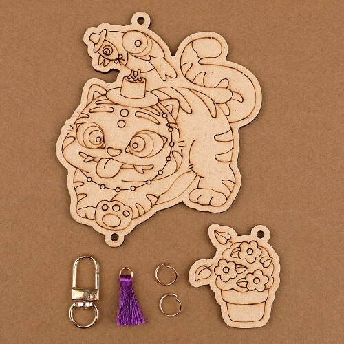 팬시 우드 까치 호랑이 키링 열쇠고리 만들기 1세트