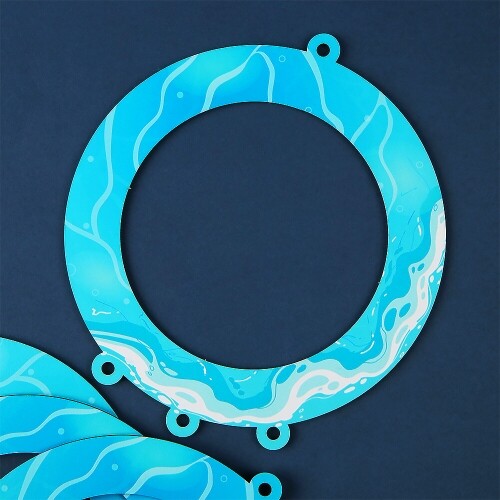 인쇄 우드 단면 바다 해변 파도 원형 데코판 4개입