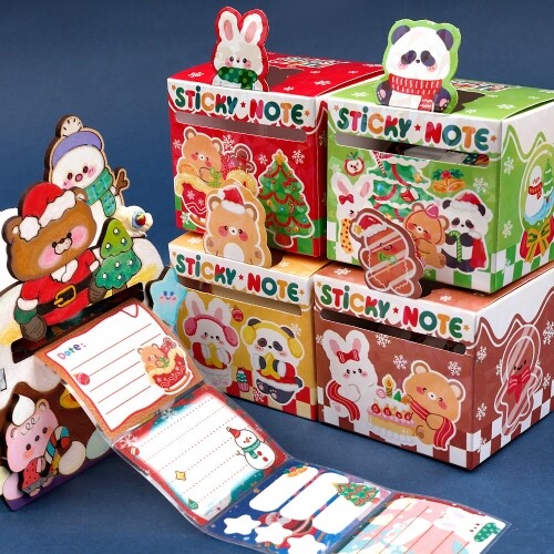 뽑아쓰는 크리스마스 동물 스티커 점착 메모지 48장입