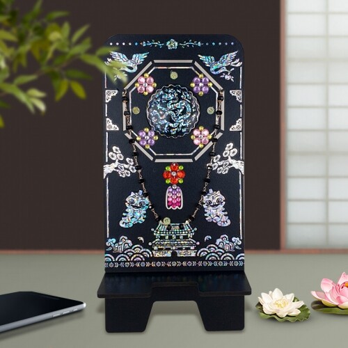 인쇄 우드 세로형 검정 문양 노리개 핸드폰 거치대