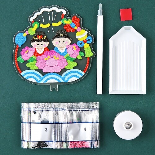 보석십자수 전통 문양 복주머니 아크릴 노리개 만들기 1세트