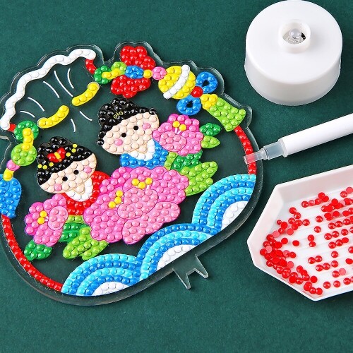 보석십자수 전통 국보 아크릴 키링 열쇠고리 만들기 1개입