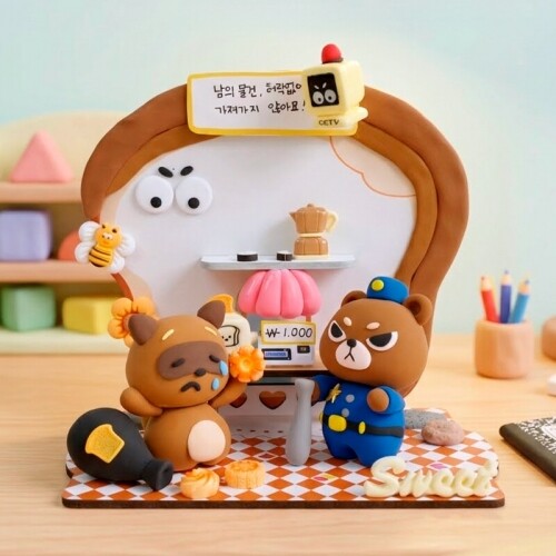 인쇄 우드 DIY 미니어처 곰돌이 식빵 배경판 만들기